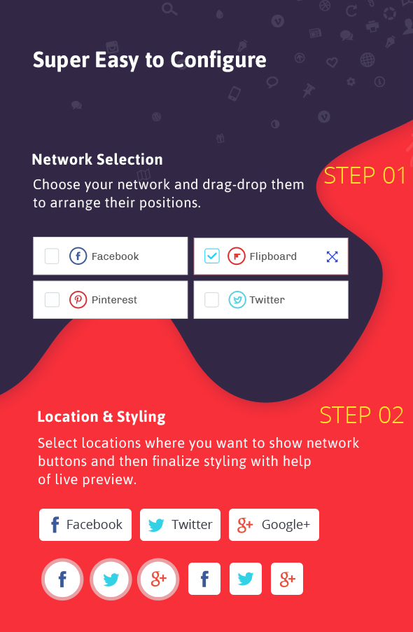 简单地选择和安排您的网络,选择显示社交网络按钮的位置并在预览的帮助下完成样式,为移动站点自定义您的社交网络按钮,最后只需保存选项并检查前端站点,您将拥有漂亮漂亮的按钮.