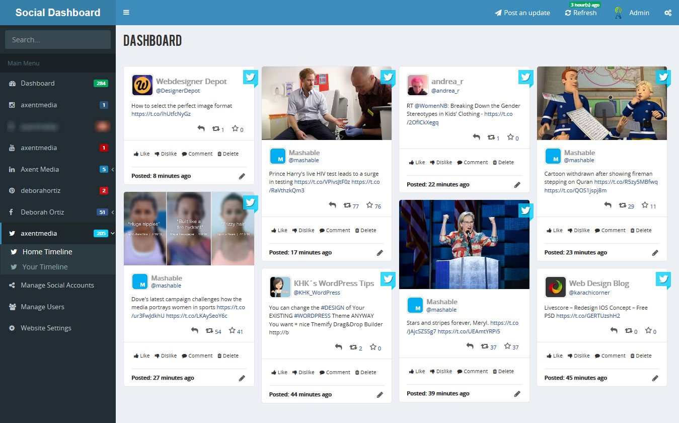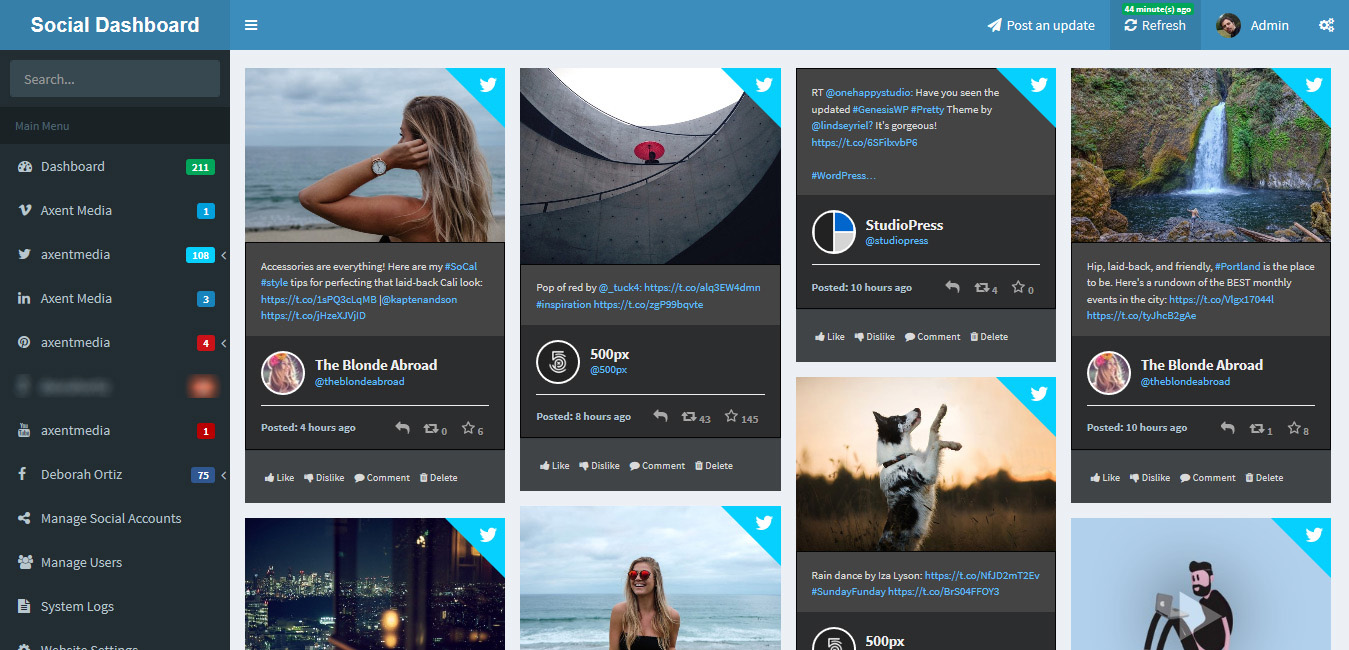 PHP Social Dashboard 是一个社交媒体管理平台,个人或公司可以使用它通过单个界面跨多个渠道或帐户协调社交媒体的存在。
