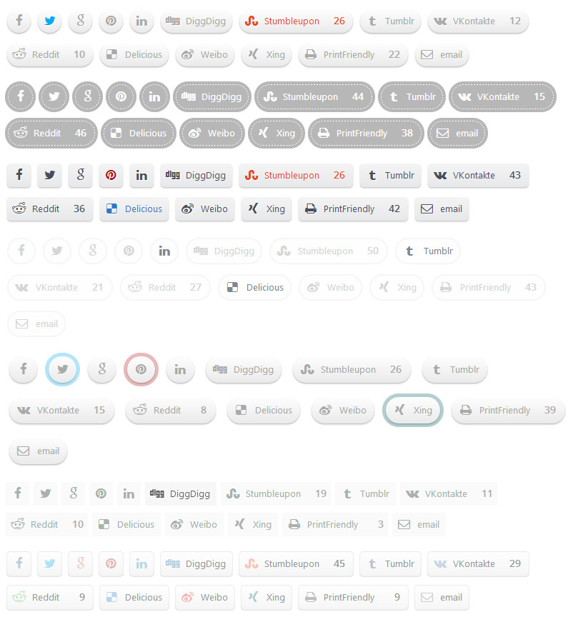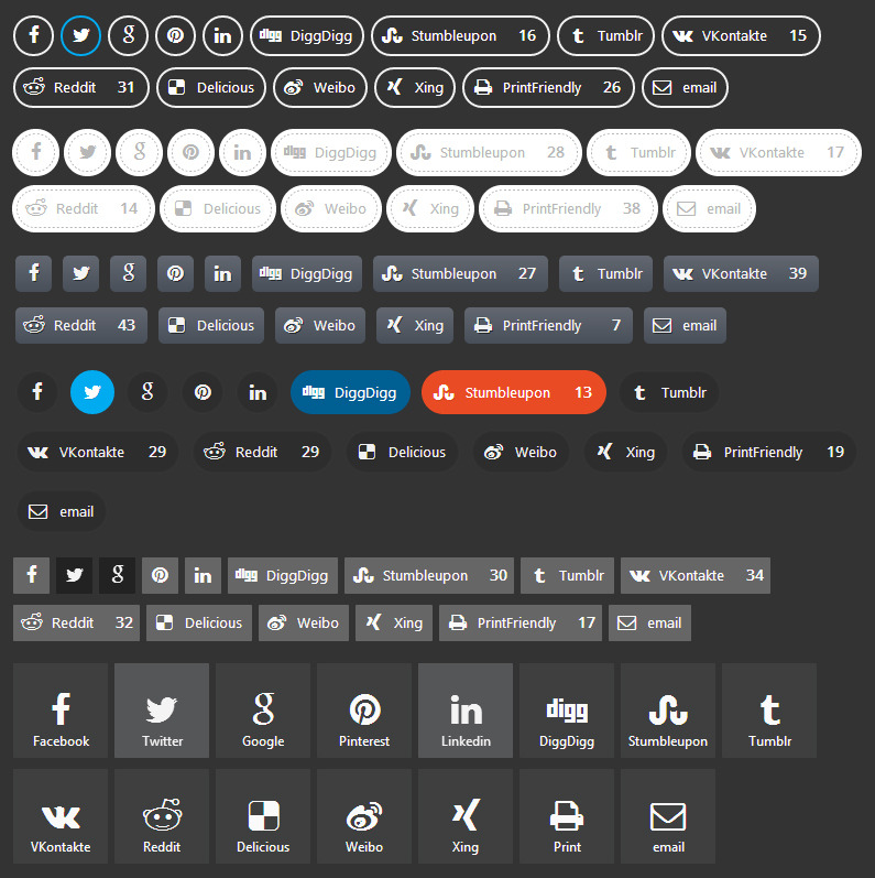使用社交分享和储物柜插件,您可以显示社交网络的全名或仅显示社交图标。取决于您的设计、可用空间或需求,只需单击一下即可启用/禁用社交共享全名