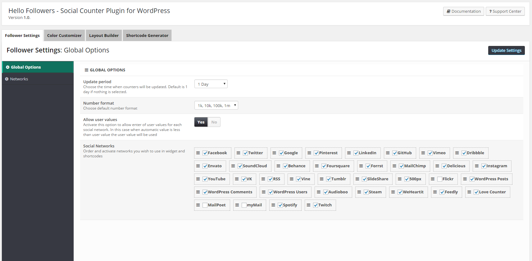 社交资料分析将帮助您监控 WordPress 安装上所有活动网络的社交资料粉丝/追随者/订阅者的变化。这是详细检查不同时间段(从一天到一年)的配置文件计数变化的简单方法。因此,在分析受众反应并将您的在线营销策略建立在真实事实的过程中,社交资料分析必须具有工具。