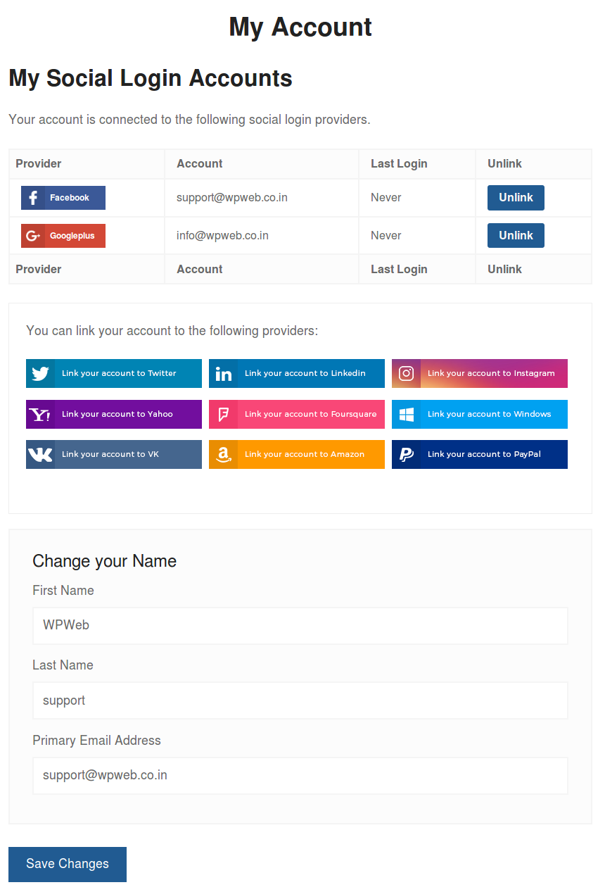 客户将始终能够通过访问“我的帐户”页面将社交帐户与您的网站关联或取消关联