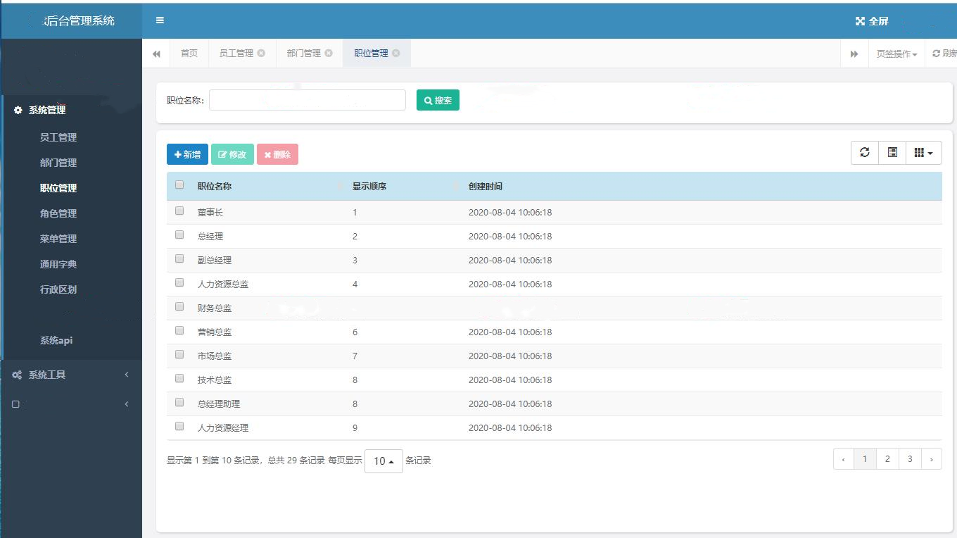 员工管理:员工是系统操作者,该功能主要完成系统用户配置