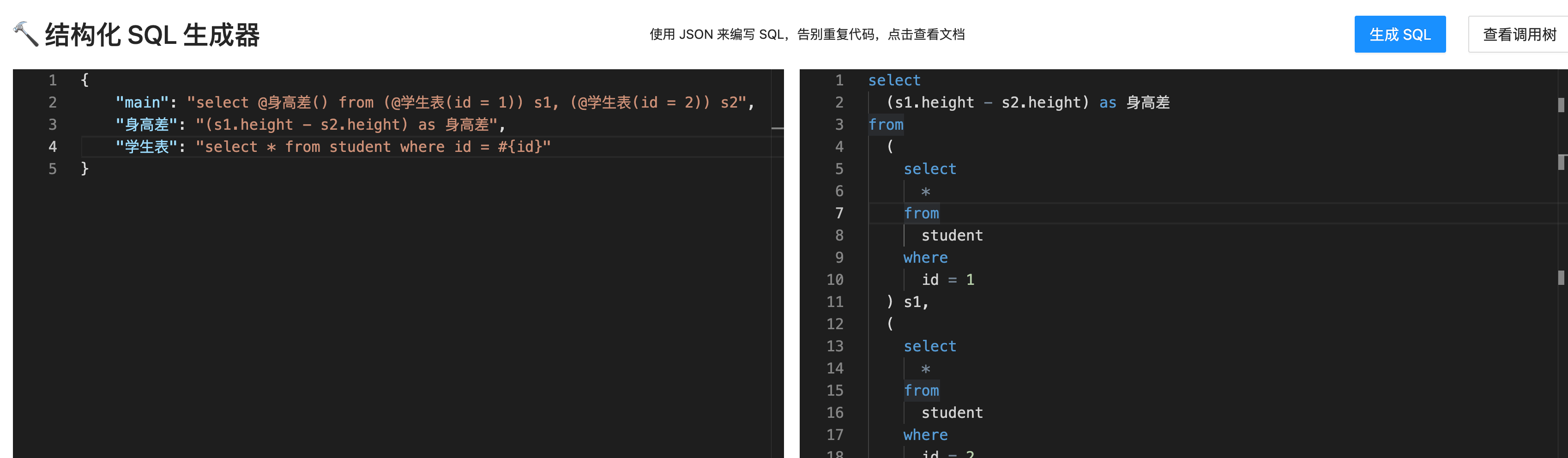用 JSON 来生成结构化的 SQL 语句