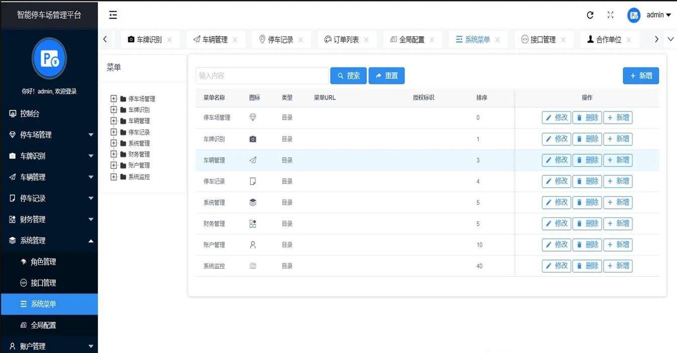 系统管理:角色管理、接口管理、系统菜单、全局配置