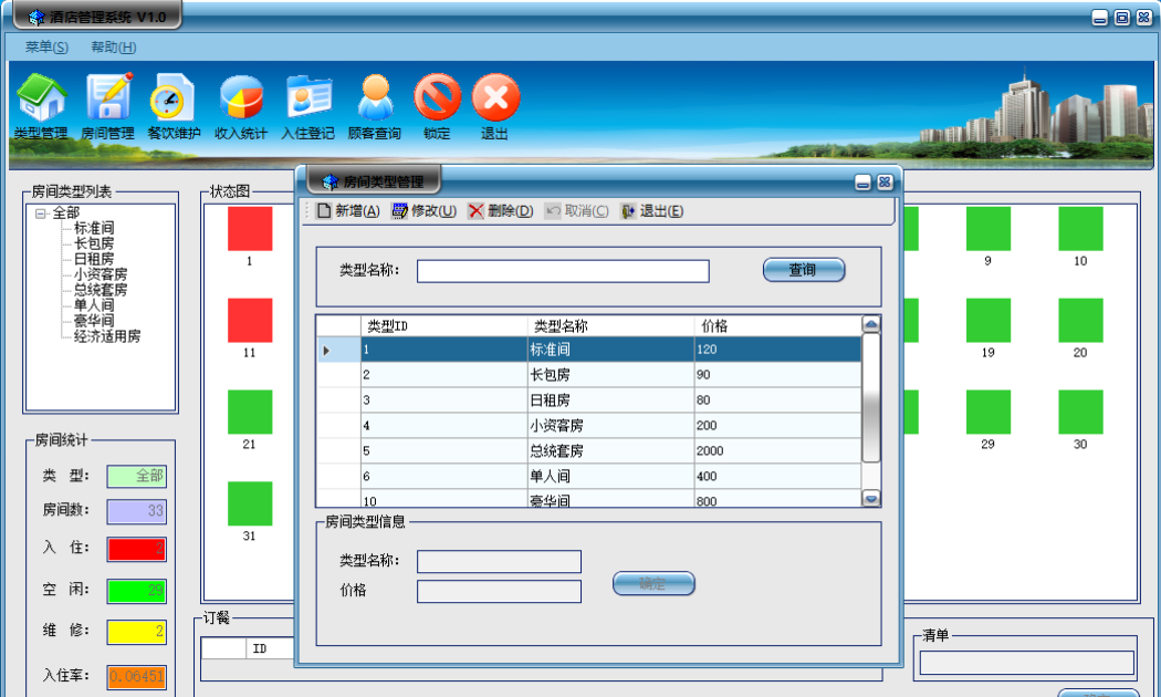 酒店管理系统界面简洁,功能清晰,方便直观地查看及维护房间住宿、