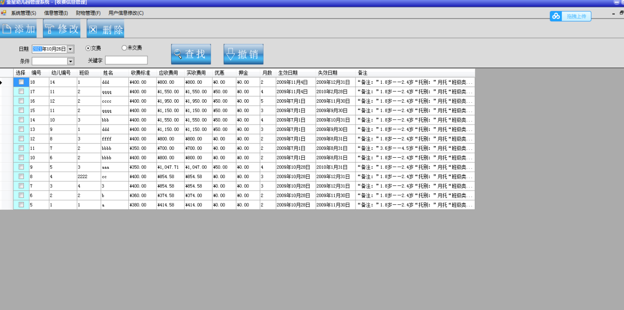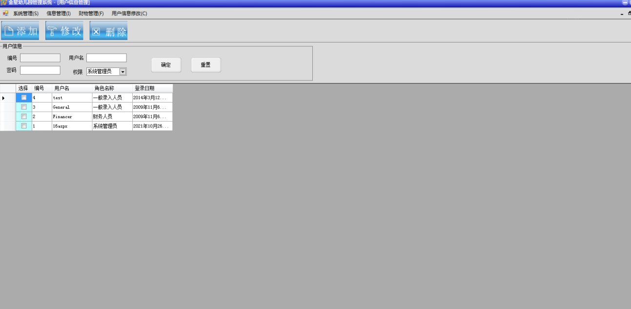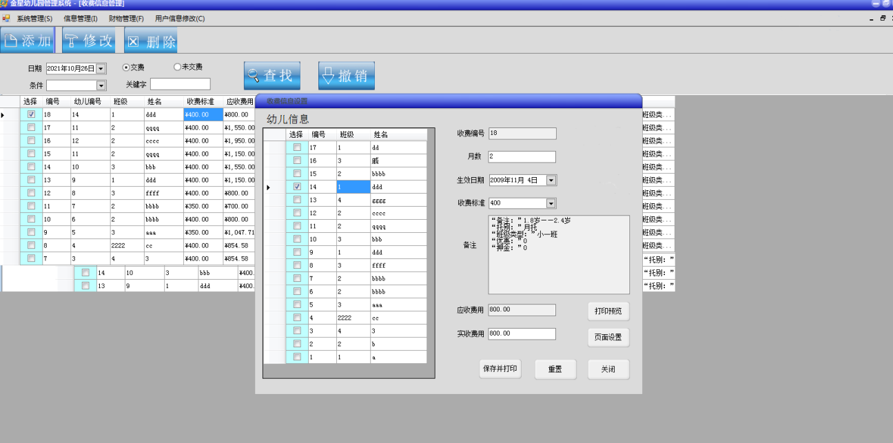 主要功能有用户管理、幼儿信息管理和财务管理生成打印单据。并开发了其安装包。