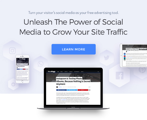 Epic Social Share 是 WordPress 的高级社交分享按钮插件。它允许您非常轻松地添加分享按钮,包括 Facebook、Twiter、LinkedIn、Google+、Pinterest、Instagram、Youtube、WhatsApp、Line 等(涵盖 15+ 社交媒体和移动应用平台)。
