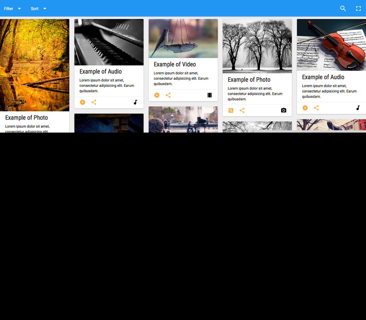 根据上传日期、喜欢、查看次数以及标题对项目进行排序。