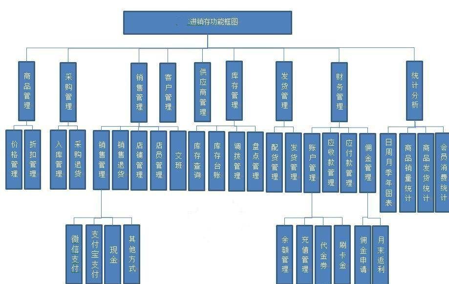 基本功能:商品管理、规格型号管理、价格管理、采购管理、销售管理、店铺管理、促销管理、会员管理、供货商管理、库存管理、应收款管理、应付款管理、配货管理、发货管理、供货商来往账管理、收入管理、支出管理、利润核算;