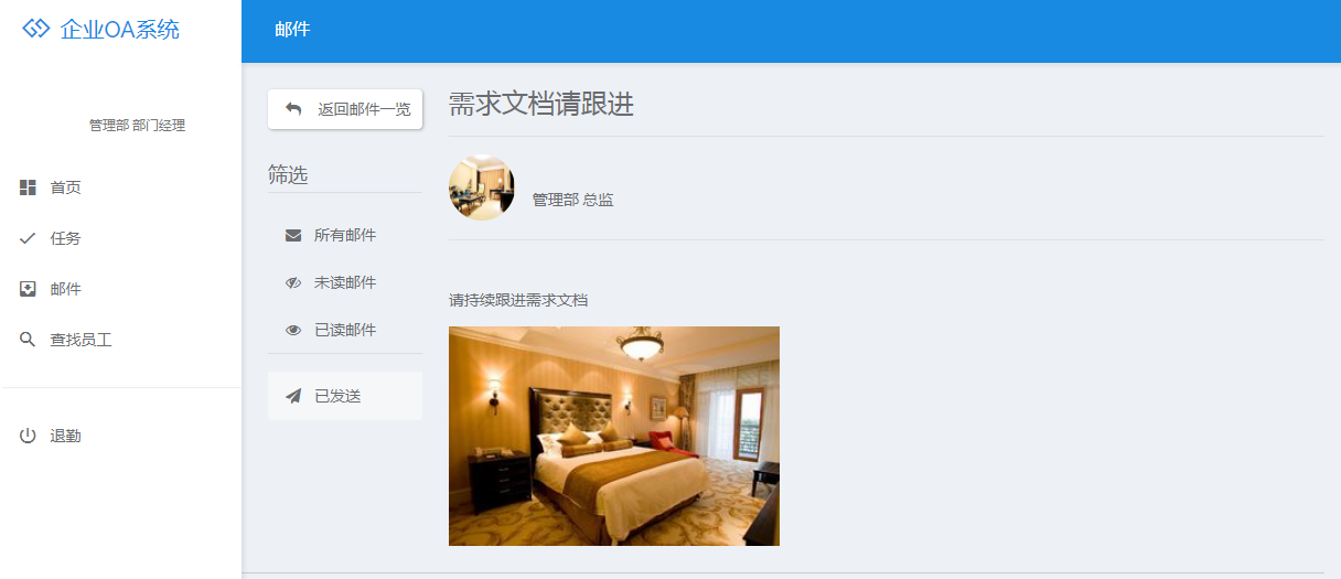 通知管理(通知发布、更新、删除),站内信发布、回复、删除等,发布公告和任务及站内信时可上传图片等。项目包含完整的源码