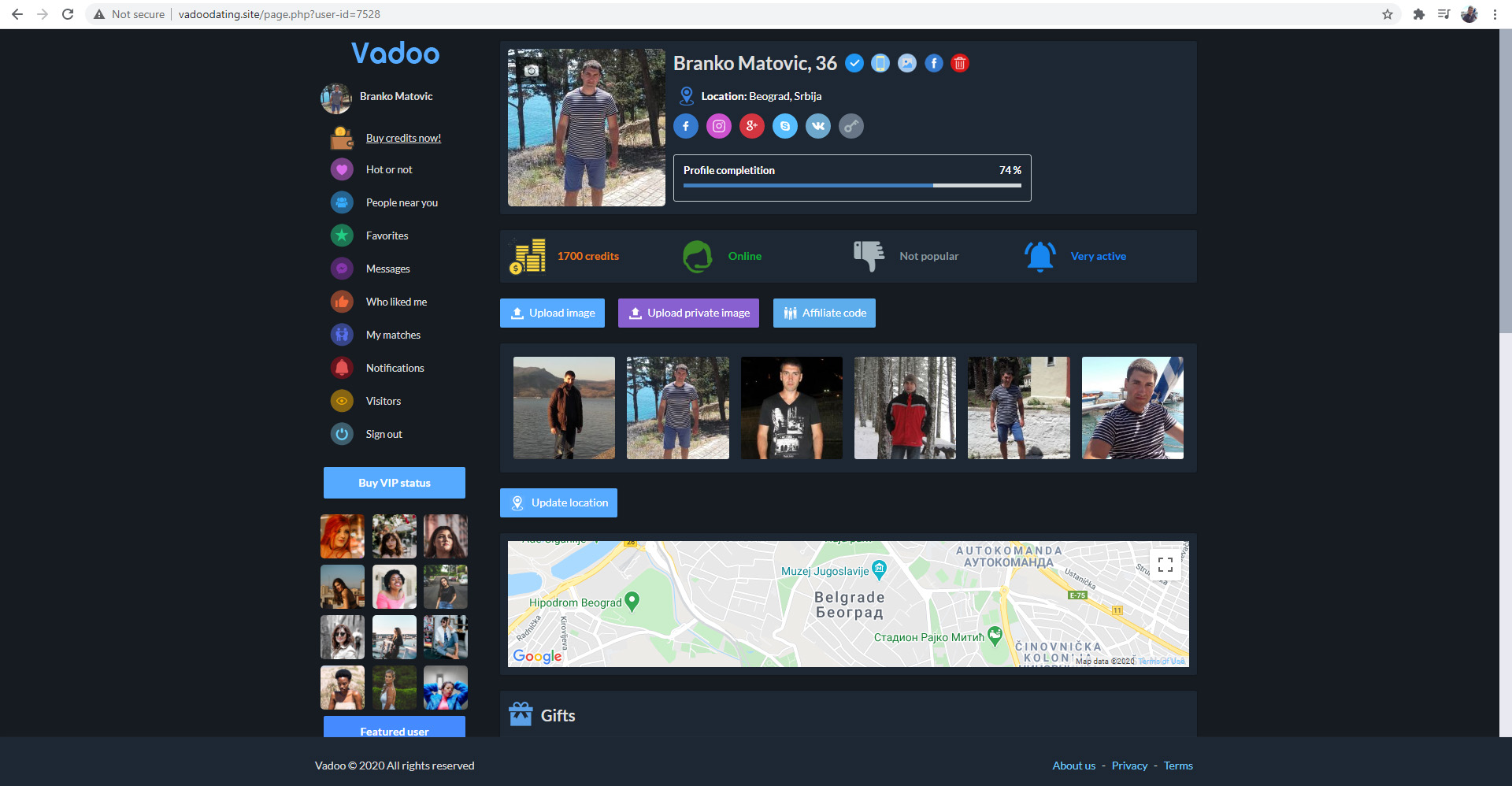 Vadoo 是一款主要基于 Badoo 网站的交友网站软件。精美的设计、javascript 网格动画(共 8 个)、带有表情的高级实时 Ajax 聊天、高级贴纸和非常友好的用户界面。 Spotlight、用户地理位置、喜欢或不喜欢游戏以及许多其他 Badoo 类似选项,如用户过滤器。