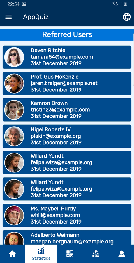 带收入系统的测验应用程序是一个安卓应用程序,允许用户玩(回答问题),收集奖励积分并在达到应用程序经理(您)确定的最低提款金额时要求提款!用户还可以通过推荐系统(推荐代码)邀请朋友注册到这个应用程序来收集奖励积分。