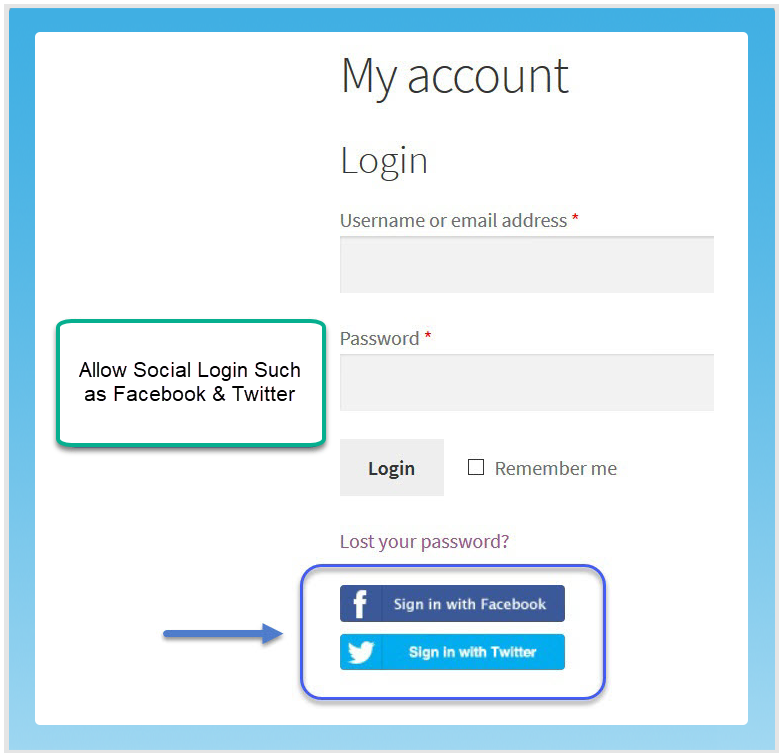 此外,它还允许您启用/禁用其他 WooCommerce 重要字段,例如 Facebook 和 Twitter 登录功能。