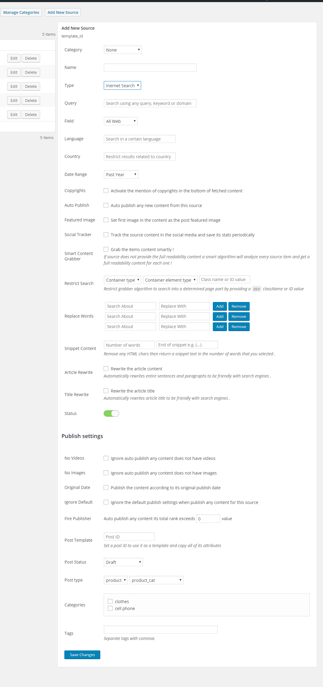 与 5 个不同的服务提供商集成以旋转/重写源内容以对 Google 友好;)