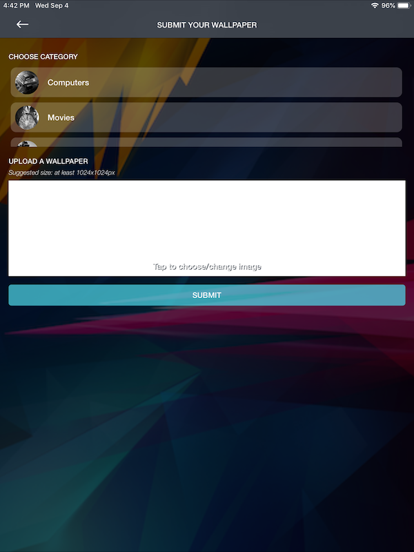 通过应用程序使用直观的用户界面轻松提交您自己的壁纸以供批准