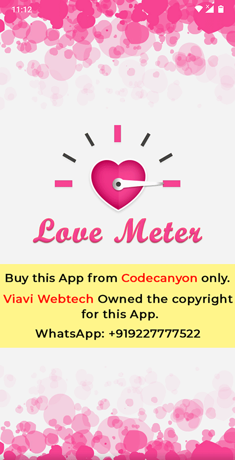 该应用程序具有漂亮的用户界面、非常易于使用的代码以及适用于任何初学者的详细文档以及许多可用的实用功能,请检查该应用程序的所有功能并在商店中制作您自己的 LOVE METER 应用程序,因为已经有一些应用程序那里有数百万的下载量。