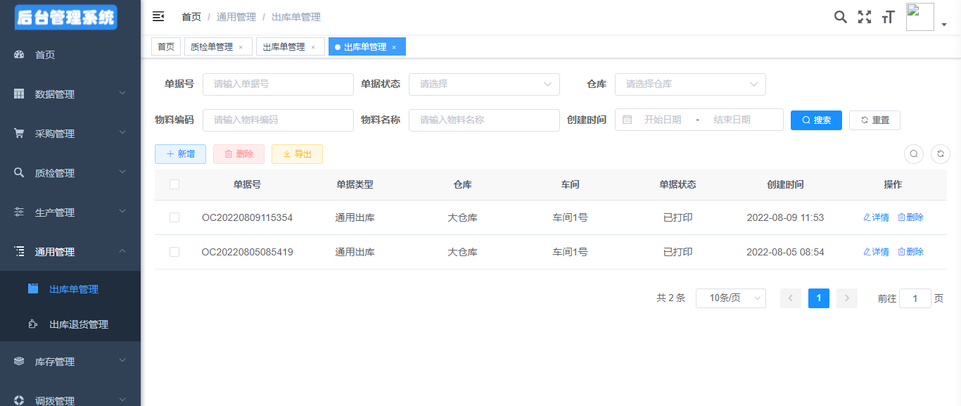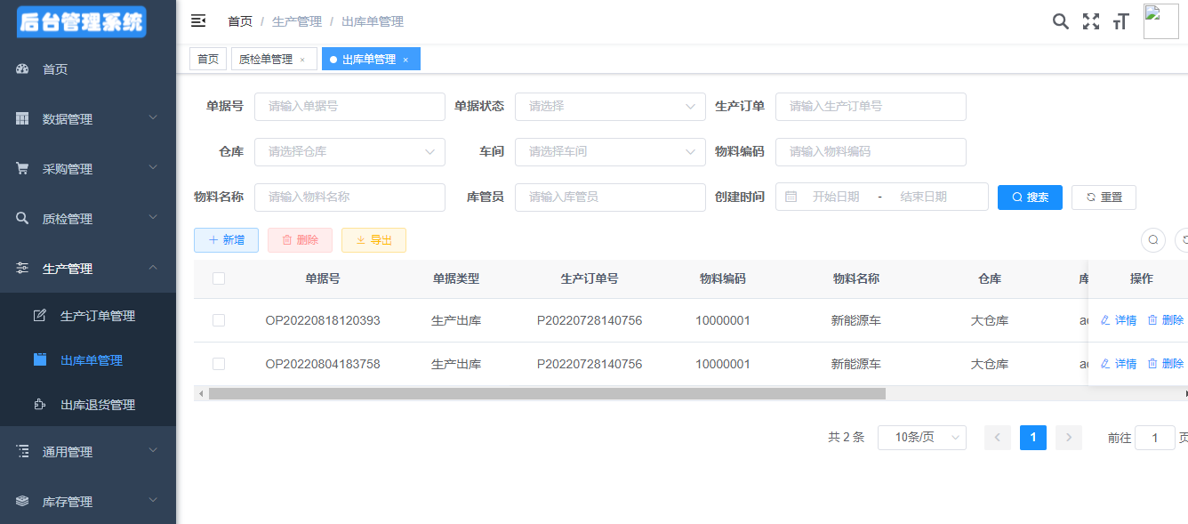 3、支持产品出库、入库的数据导出