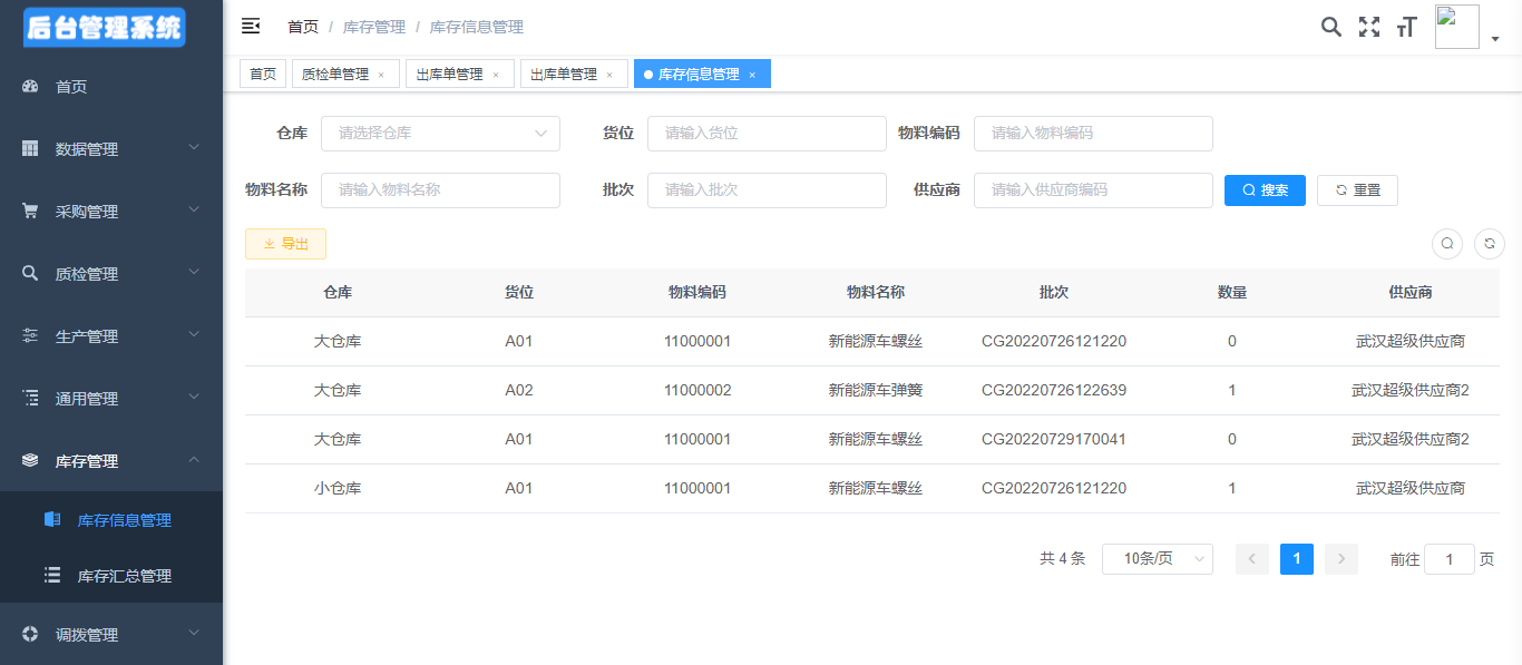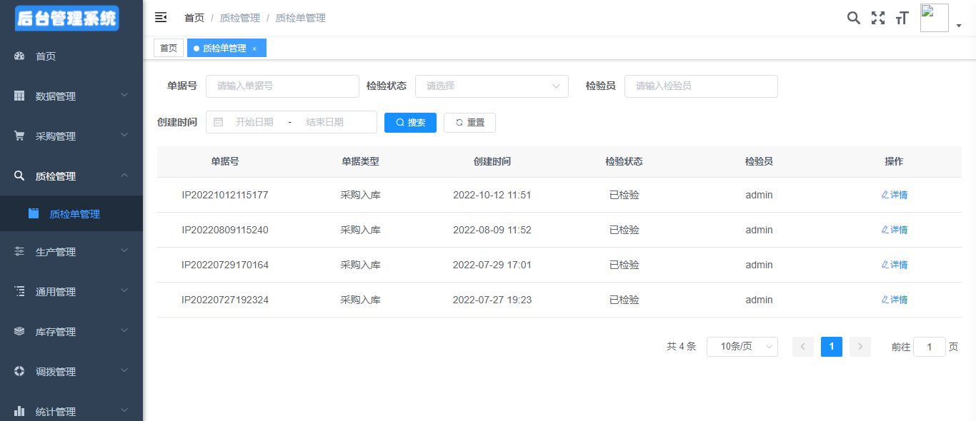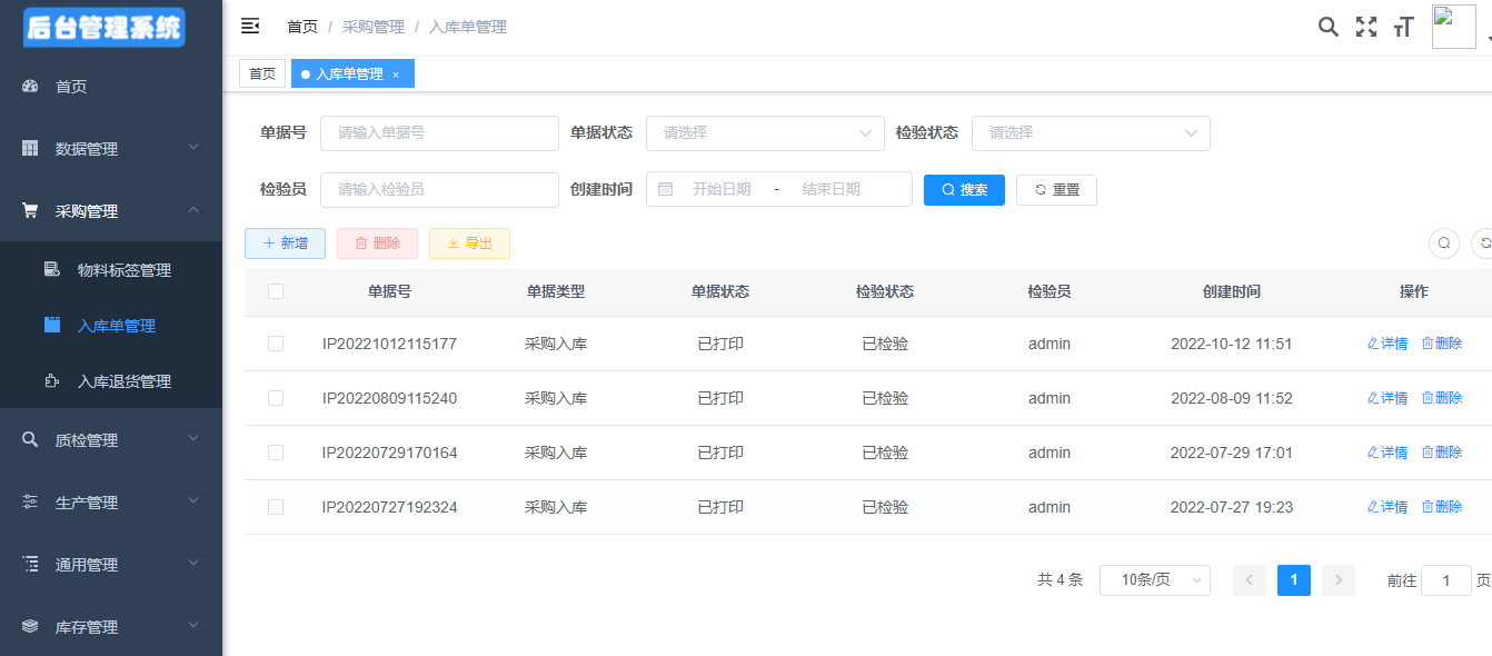 1、支持入库、质检审核、退货等采购过程中的记录追踪