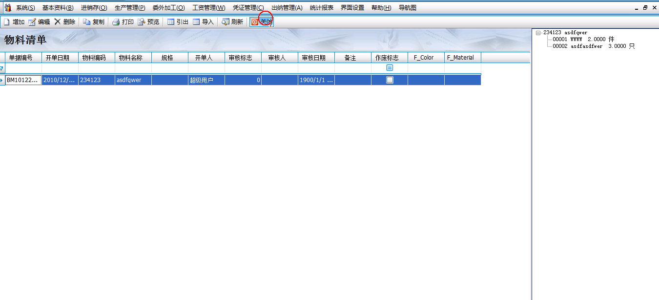 系统、基本资料、进销存、生产管理、委外加工、工资管理、凭证管理、出纳管理、统计报表、界面设置、帮助、导航图