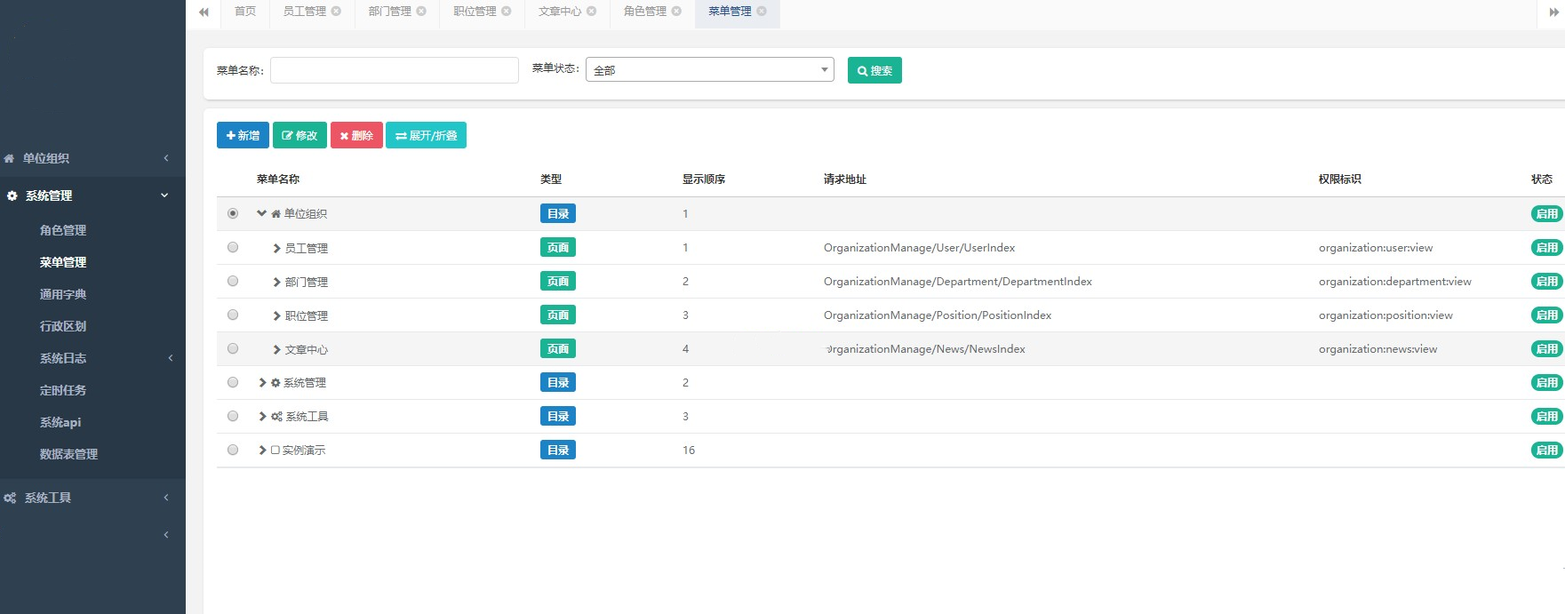 菜单管理:配置系统菜单,操作权限,按钮权限标识
