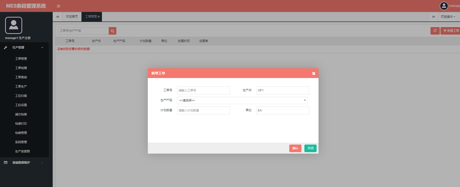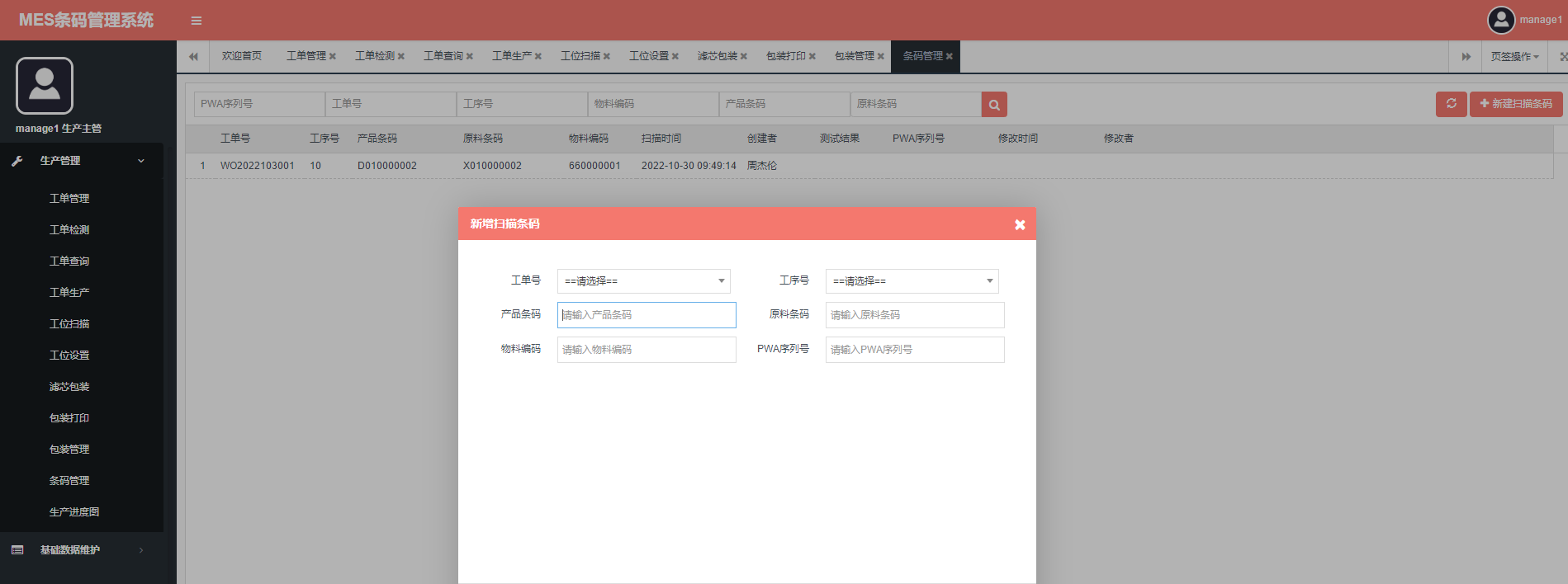 1.生产主管进入系统设置工单、设置产品扫描工站、设置每个工站扫描的物料条码、维护物料表。