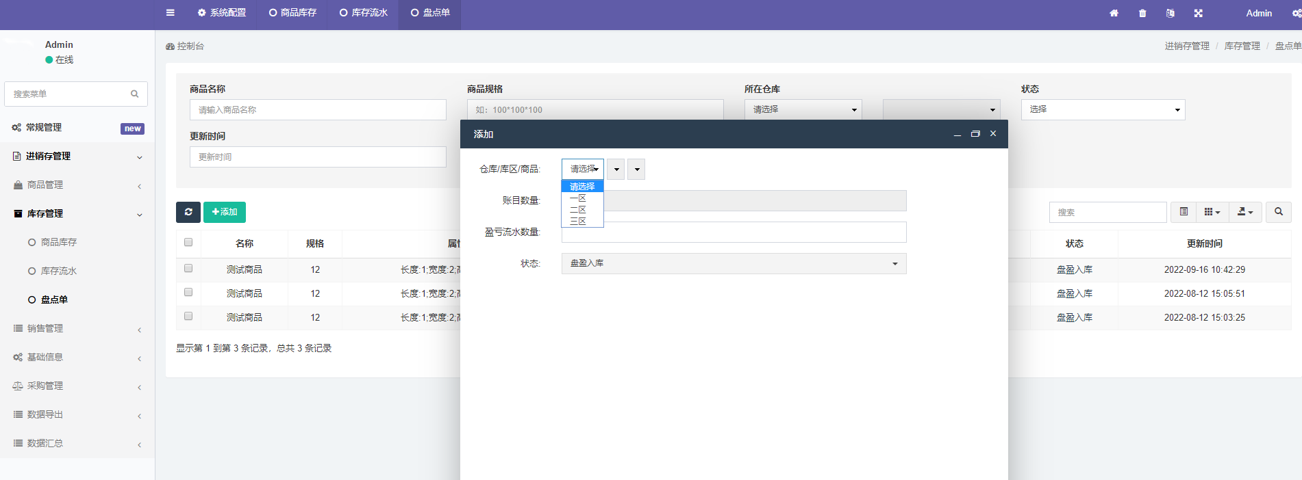 商品管理:商品名称、商品规格、所在仓库、更新时间、可用库存、冻结库存、单位、规格、属性、所在库区