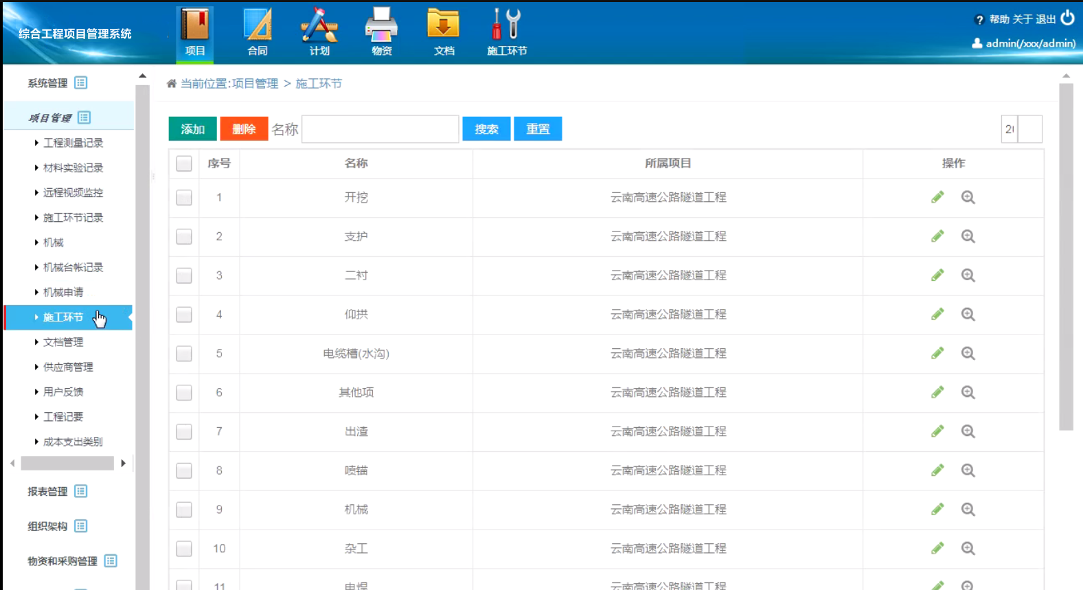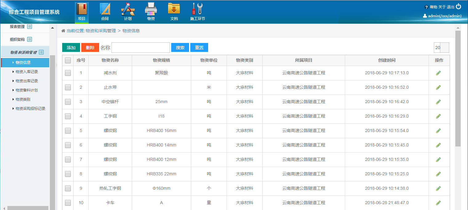 项目管理:甘特图、成本、计划、计价、日志、安全、质量测量、试验、机械、物资、文件