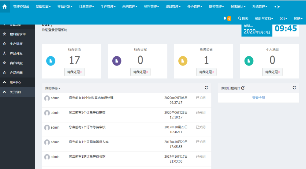 客户档案、 供应商档案 、外协档案 、 物料档案、 产品档案