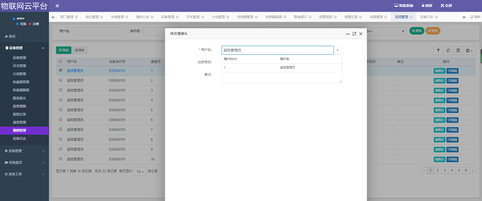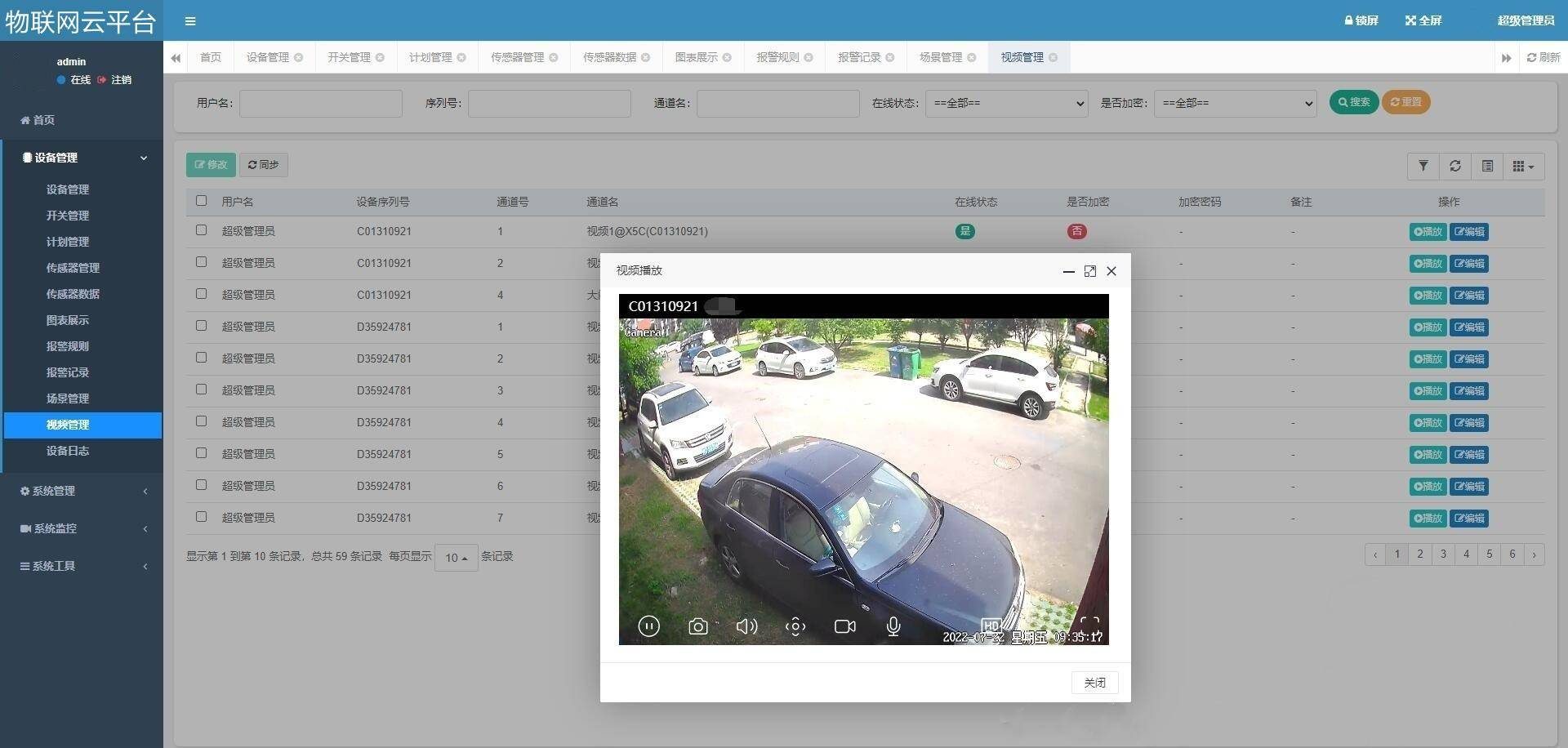 10、具有视频管理功能,支持萤石云协议的摄像头均可接入云平台,可在云平台直接预览视频画面。