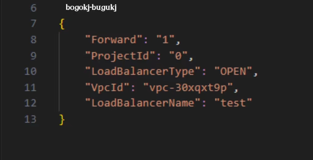 输入创建公网负载均衡参数,代码如下: