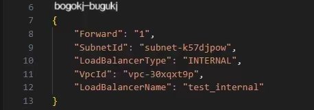 输入创建内网负载均衡参数,代码如下: