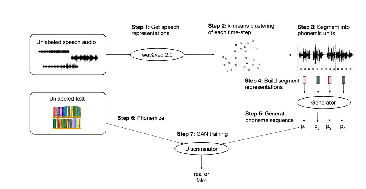 他们的工作称为“wav2vec Unsupervised”或“wav2vec-U”,主要作者 Alexei Baevski 及其同事在一篇论文“Unsupervised Speech Recognition”中进行了描述。 还有一篇配套的博客文章。