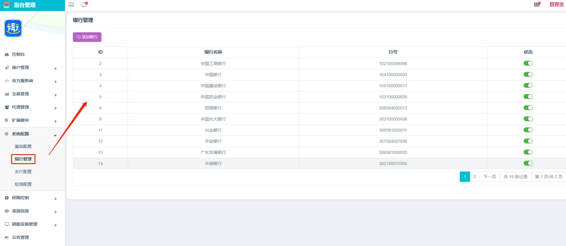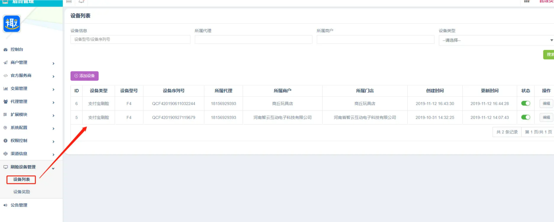 系统支持生成多个支付通道,可直接添加,可生成聚合码,本系统主要功能为刷脸支付,可在支付宝或者微信官方购买设备绑定设备即可。