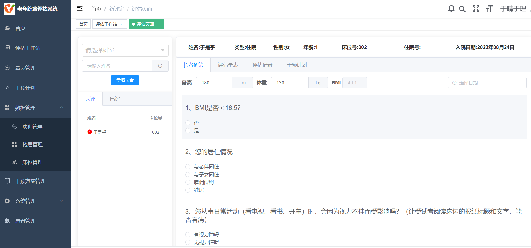 照护需求评估: 基于评估结果,评估老年人的照护需求,包括医疗、护理、社交等方面。