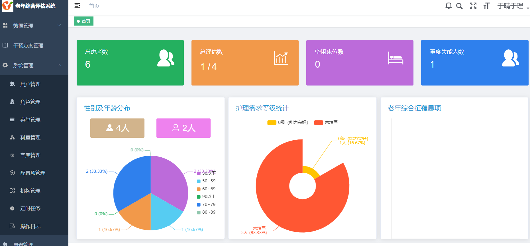 用户信息管理: 管理老年人的基本信息、医疗历史、照护需求等。包括入住、出院和转院信息。