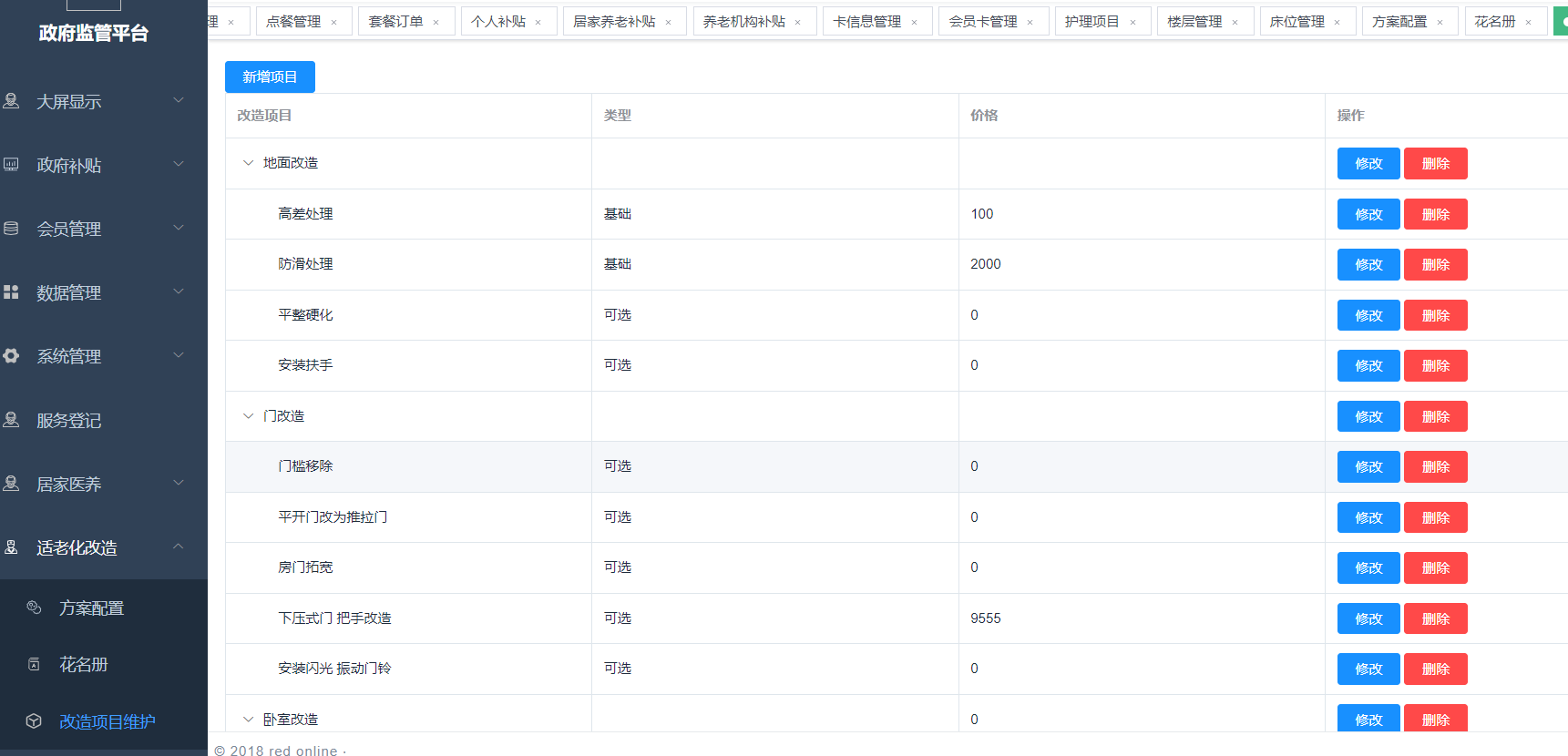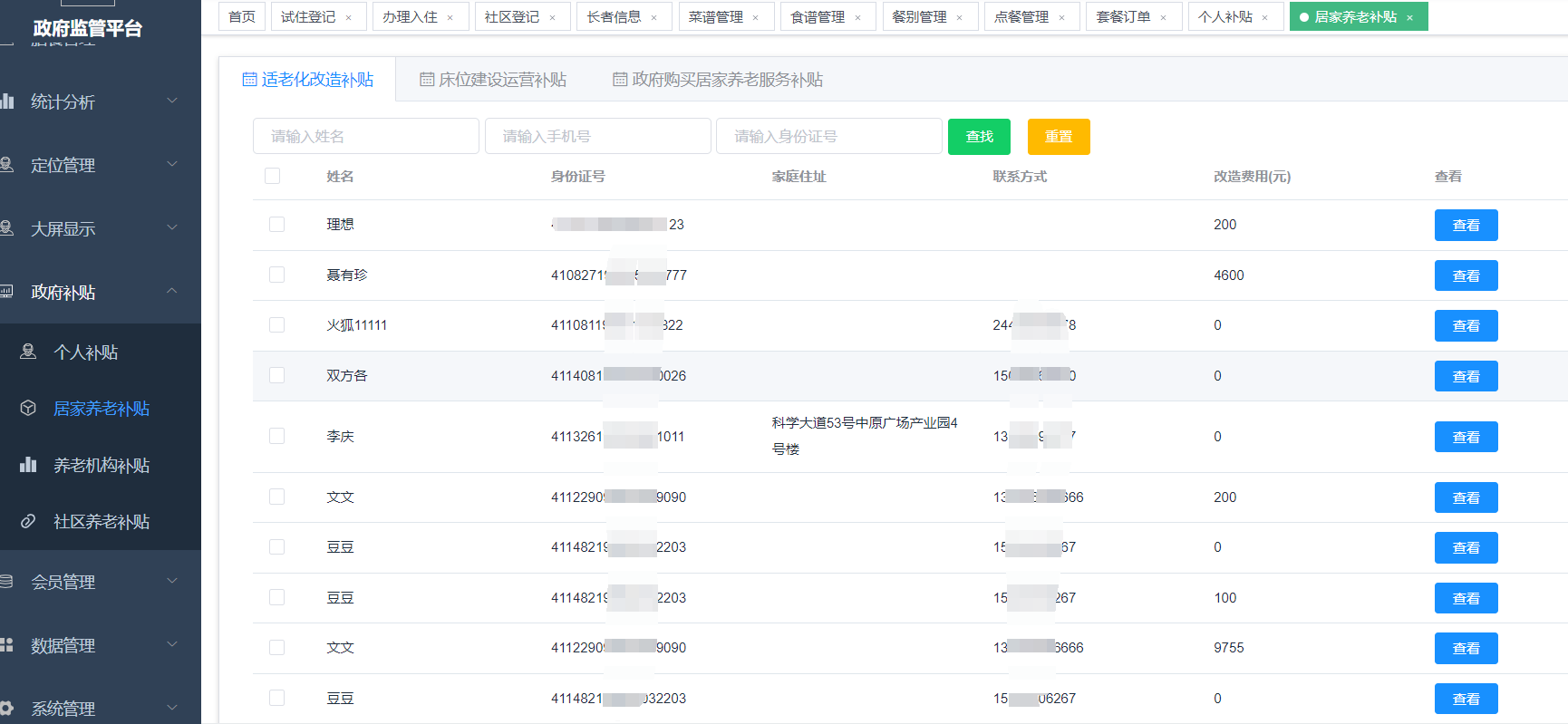 适老化改造:老人家中需要加装和维修的相关生活配套设施等。登记,查询。