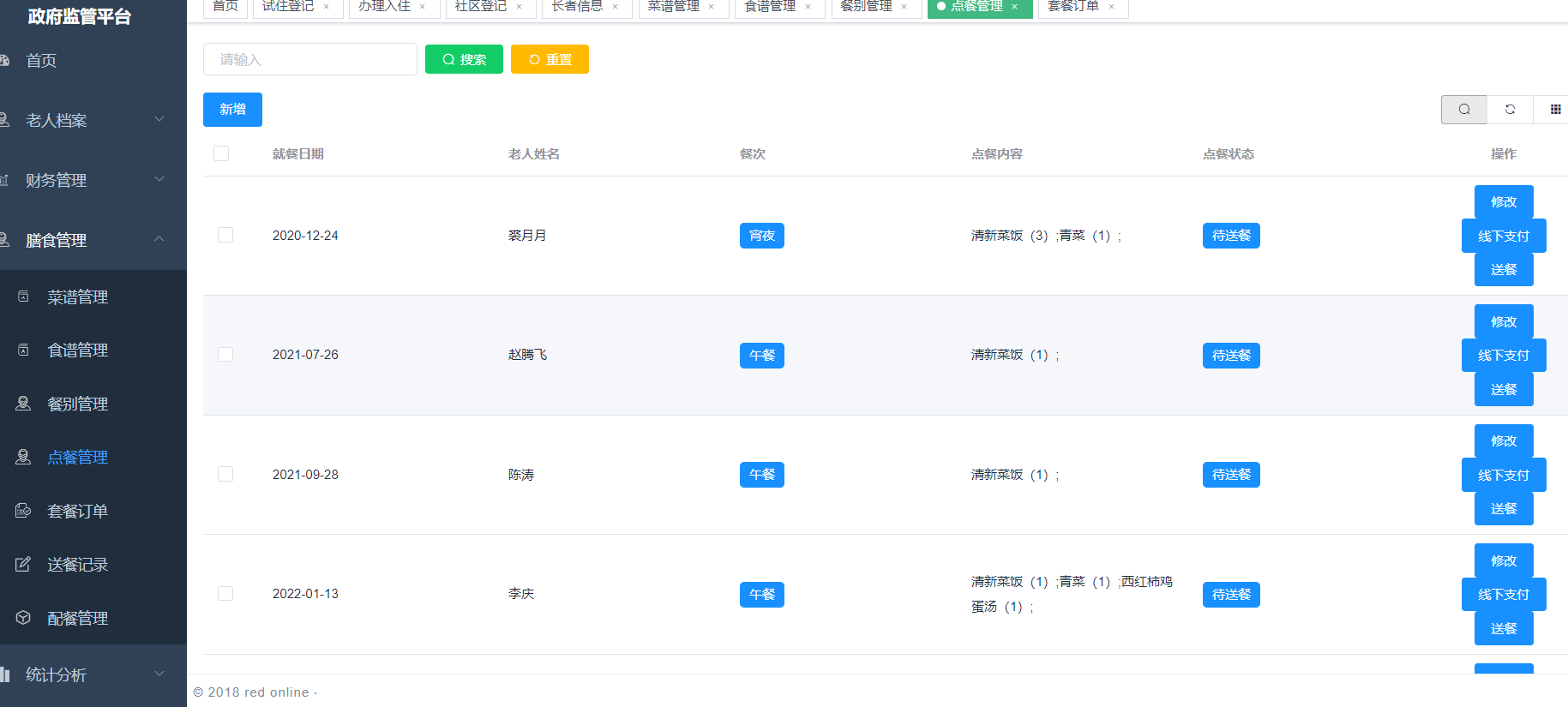 膳食管理: 管理居民的膳食计划、食物偏好、饮食限制等。