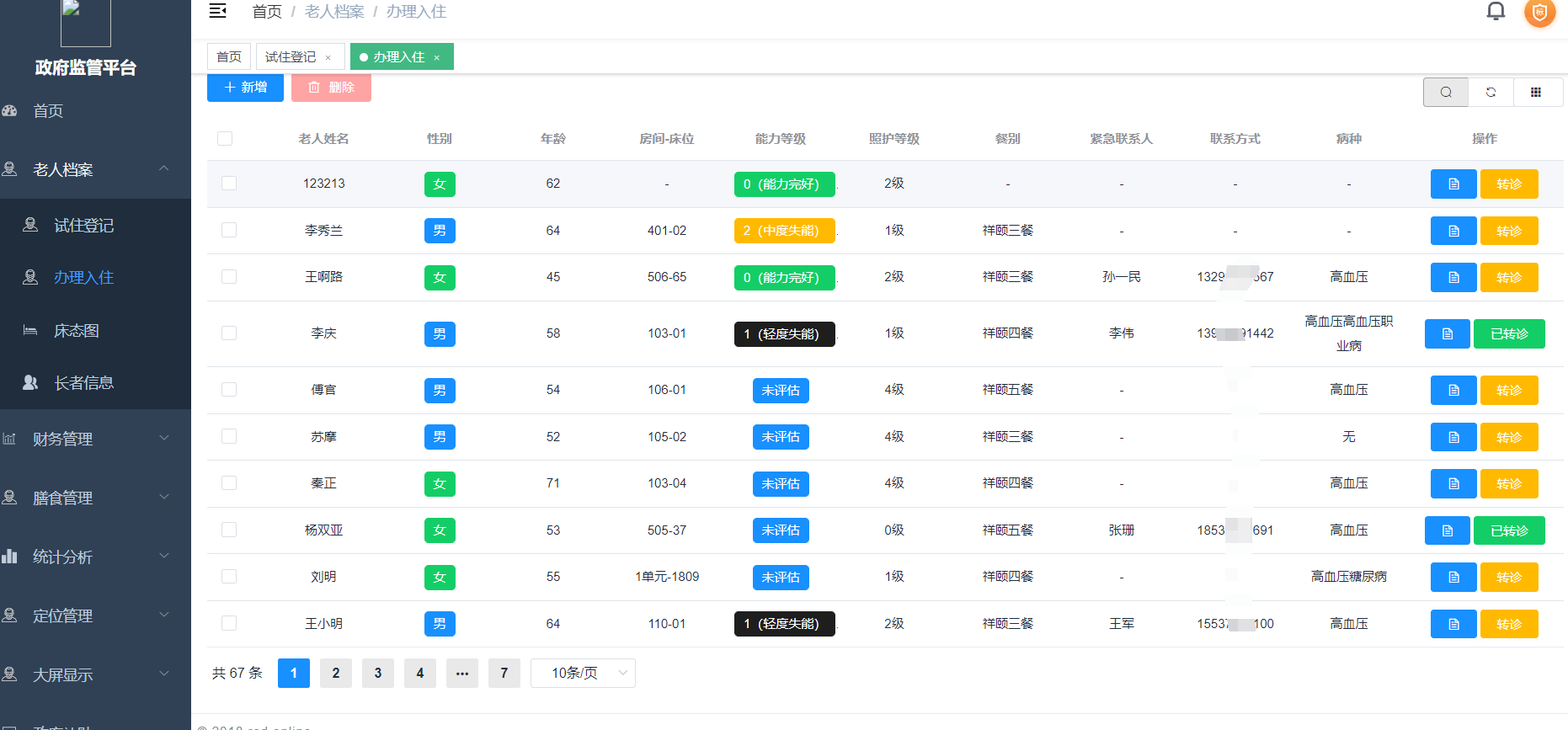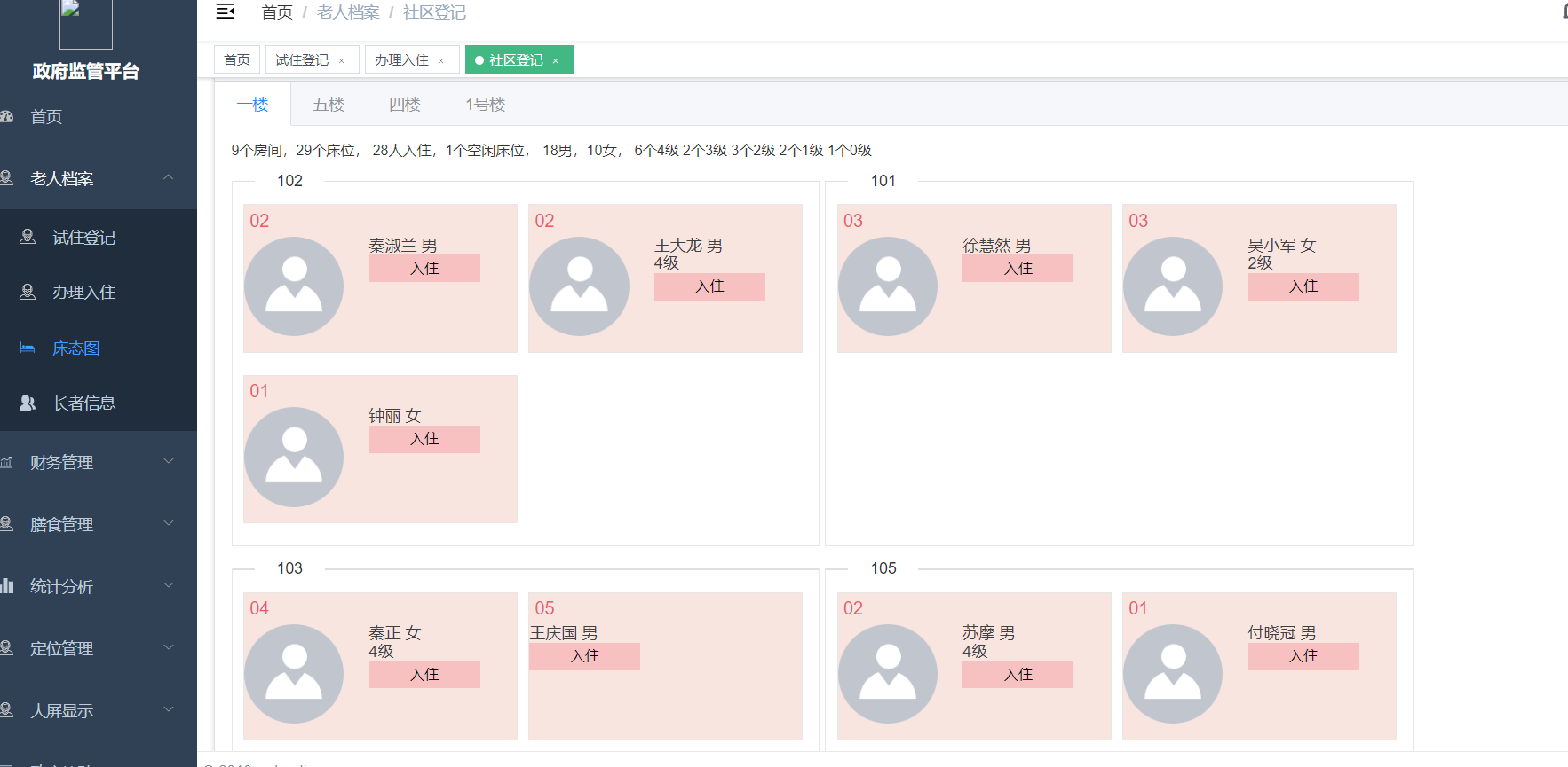 入住管理: 管理居民入住申请、安排房间、签署合同等流程。
