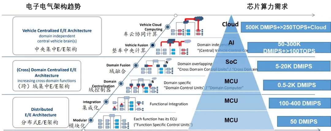 汽车电子电气架构正从分布式向集中式转变,这一变化对MCU提出了更高的要求。在性能上,尤其是在高端汽车中,处理复杂的系统数据需要MCU具备更强的性能。同时,功能安全和信息安全也变得至关重要。相关报道指出,汽车信息安全漏洞可能导致严重后果,因此,MCU必须达到更高的安全标准。