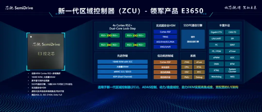 芯驰科技活动频繁。在北京车展上,他们推出了面向区域控制器应用的MCU产品系列。这一举动旨在完善其战略布局。产品线持续扩展,针对各种应用场景,均有对应产品问世。以新推出的ZCU旗舰芯片E3650为例,它主要面向跨域融合场景,具备众多领先特性。