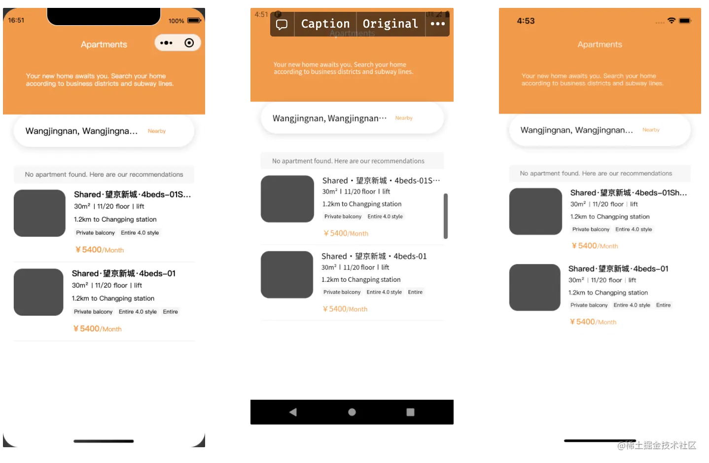 不同的框架在样式呈现方面各有特点。比如,在小型的示例项目中,Taro在微信小程序和iOS平台上的样式表现就存在一些区别,若要实现统一,通常需要编写兼容性代码。