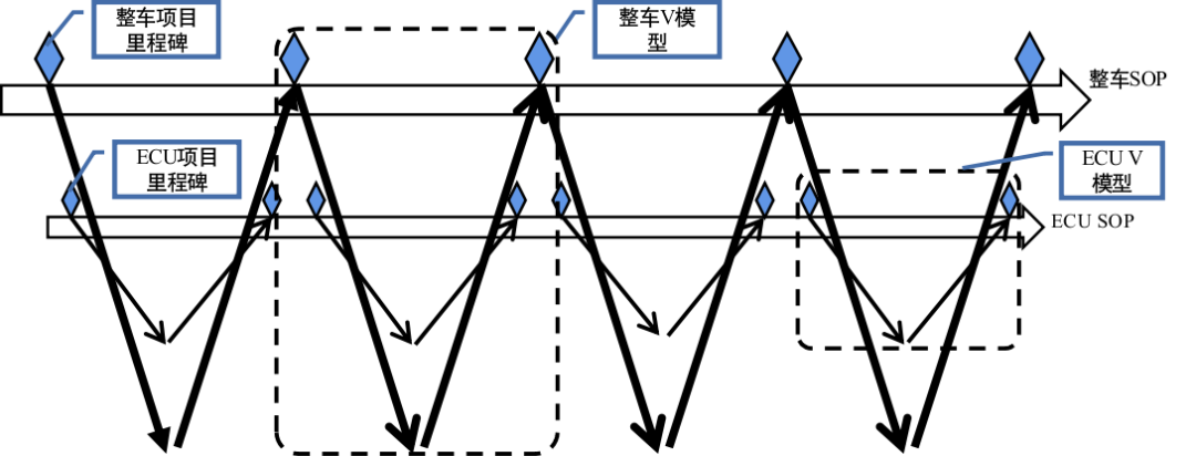 汽车开发过程,若从系统工程的角度审视,V模型便如同层层叠放的套娃。整车开发需依托多个大型整车V模型来构建整体框架。对于一些大型汽车制造商而言,在规划新车型时,从外观设计到内部功能需求,每一个整车里程碑的实现,都离不开整车V模型的有效支撑。