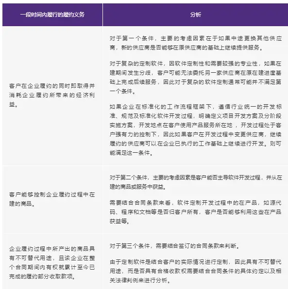在开发定制软件时,必须考虑收入确认的方法。若某段时间内符合收入确认标准,则需根据履约进度来确认。比如,对于开发周期较长的软件项目,我们可以通过已发生成本与预计总成本的比例来确定完工进度。对于那些不符合上述条件的项目,收入应在客户验收软件或软件上线运行并有权收取款项后确认。