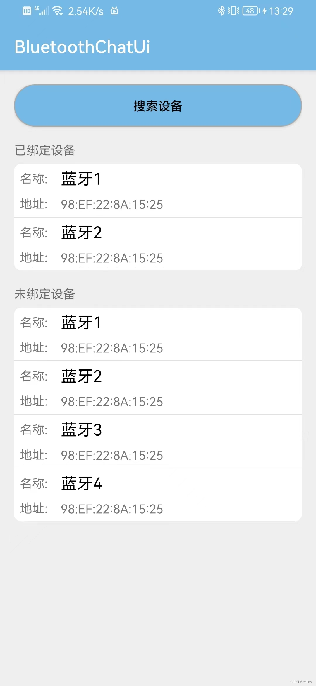 bondDevice = new DeviceClass(\"蓝牙\"+i,\"98:EF:22:8A:15:25\");