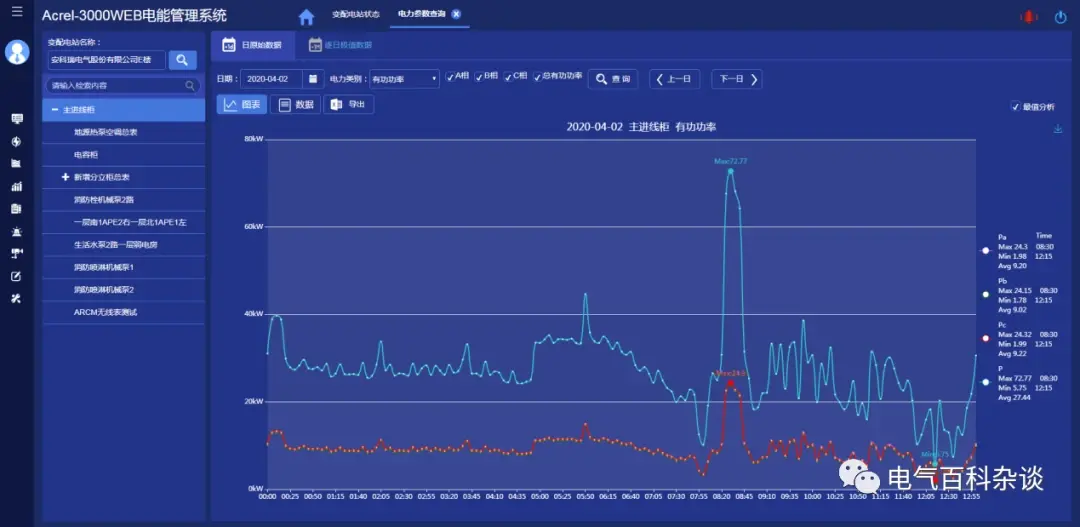 该系统在实际使用中展现出诸多优势。它具备定时抄表、汇总和统计的功能。在一家大型电厂,员工可随意查询自系统稳定运行至今的任何时段内,各配电节点的电力使用情况。这涵盖了进线用电量以及各分支回路的电量消耗统计分析报表。