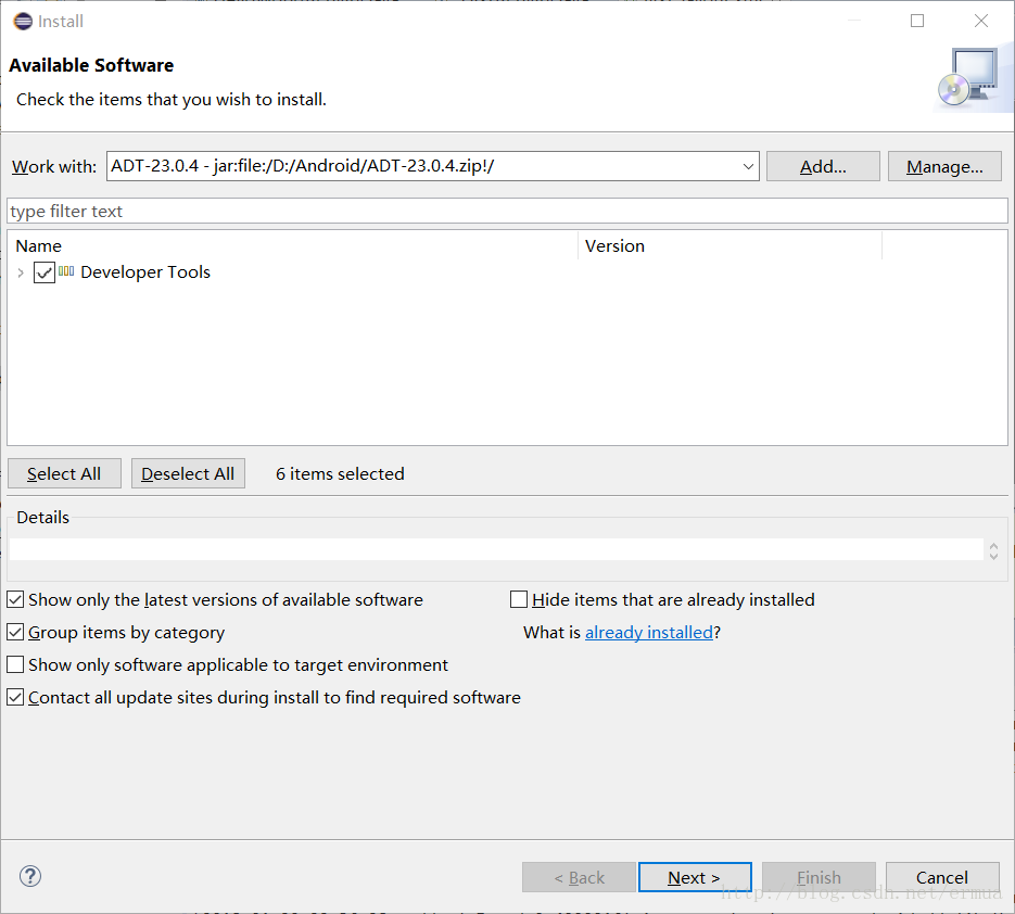 ADT是Eclipse的一个插件,支持在线和离线两种安装方式。先来谈谈在线安装,ADT插件需要从特定网站下载,但这种方式存在一个明显的问题——需要翻墙。对国内开发者而言,翻墙不仅合规风险高,操作也相当复杂。若坚持选择在线安装,可能会遇到网络不稳定、下载速度慢,甚至下载失败的情况。