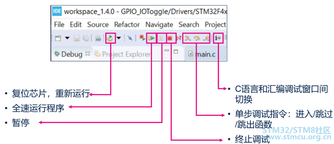 调试相关按钮和菜单