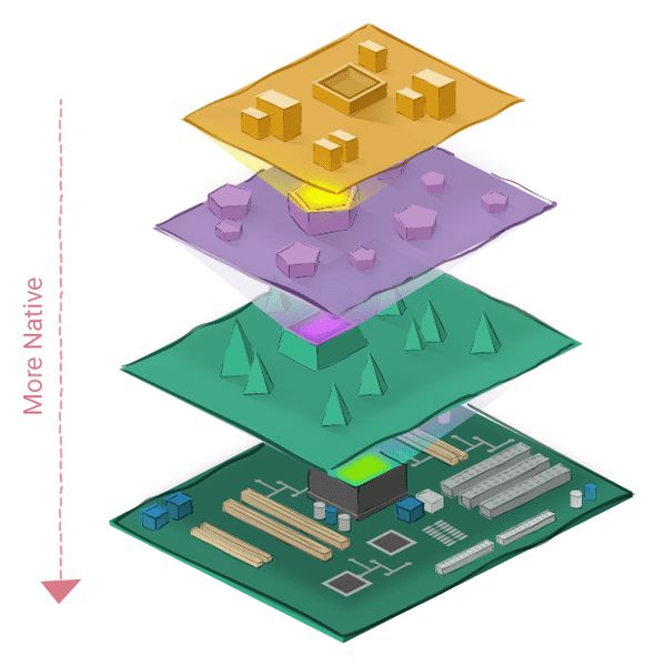 在技术开发的领域,原生应用程序必须依赖各自平台提供的工具和编程语言。Web应用程序的开发,主要采用React等技术,还有较少人使用的Weex等。Web应用程序开发的一大优势在于其跨平台的特性,通过类似Web技术的开发方式,可以显著降低开发成本和时间。然而,原生应用程序在可拓展性方面更为突出,能够更充分地利用设备功能,如设备访问、界面布局等。原生应用提供的功能模块,开发者可以通过JavaScript调用,实现在Web应用程序上。但总体来看,原生应用程序在这方面的深度和广度还是要优于Web应用程序。