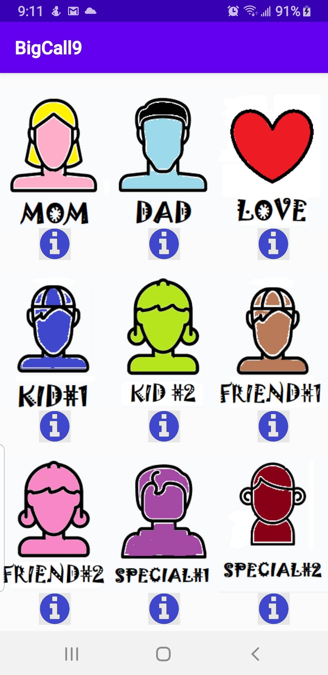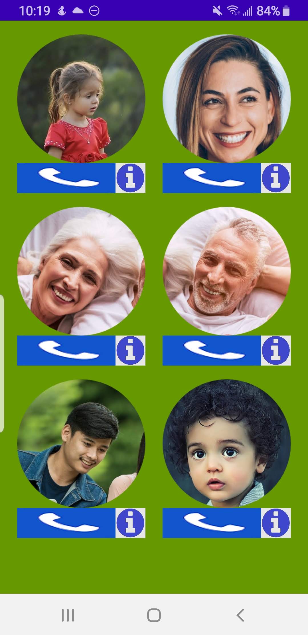 因寻不到一款能显示大头照并能拨打电话的APP而一筹莫展,这才萌生了自主开发的念头。这种情况或许很常见,许多人在临时起意下开始APP的开发,往往是从一个小小的日常需求中激发出创造的欲望。最初的设计相当简单,只是满足了自己的需求,采用家庭联系人的头像,屏幕上仅显示8个联系人。那时的开发主要侧重于功能的纯粹实现,并未过多考虑如何推广和普及。