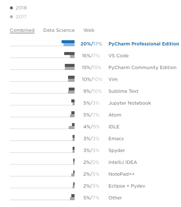 尽管在Web开发领域,似乎数据分析已超越了它,但Web开发依然是一个关键的应用领域。据调查,与上一年相比,其增长达到了2个百分点。在进行Web开发时,开发者有多种工具可供选择。比如,在编写代码时,许多流行的框架和库被普遍采用。在IDE的选择上,长期盛行的套件依然是编写最流行IDE的常用工具,但微软的VSCode也在迅速攀升。这一现象表明,开发者因不同工具提供的特性而做出了多元化的选择。而且,开发者在编写与Web相关的程序时,还需考虑数据库等其他方面的选择。